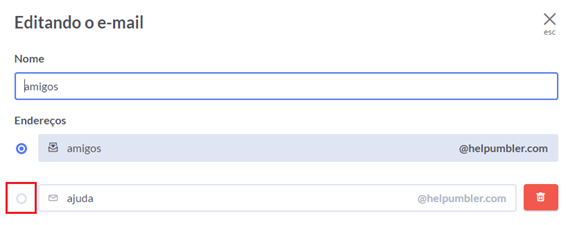 Selecione o checkbox do alias escolhido para se tornar o endereço principal da conta e clique em Salvar:
