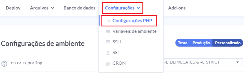 Na página de Configurações do PHP do Painel de Controle você tem acesso à algumas das configurações mais importantes do PHP. Abaixo você consegue ver uma breve descrição sobre cada uma delas.