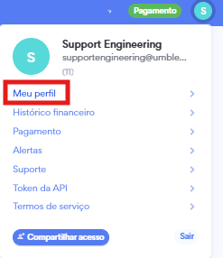 Em primeiro lugar você precisa entrar no Painel, e logo escolher a opção Meu Perfil, no canto superior direito.