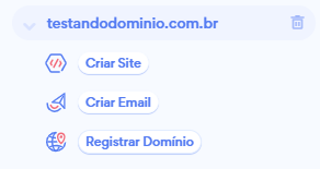 Verá seu domínio na lista localizada à esquerda da tela principal. Note que o domínio ainda não está registrado, para registrá-lo e garantir a propriedade do endereço, acesse a opção "Registrar domínio".