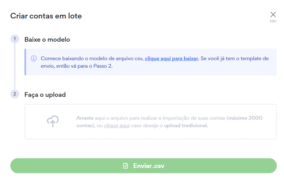 Escolha se será criado um e-mail de cada vez ou vários e-mails de uma só vez.