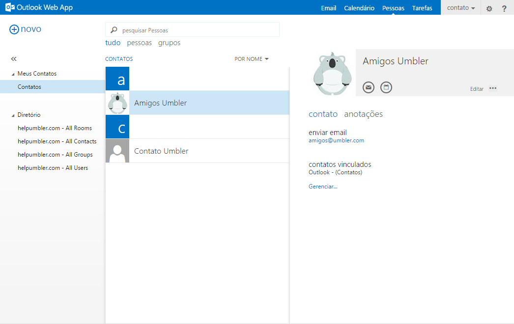 Para gerenciar seus contatos no E-mail Exchange, acesse a aba de Pessoas.
