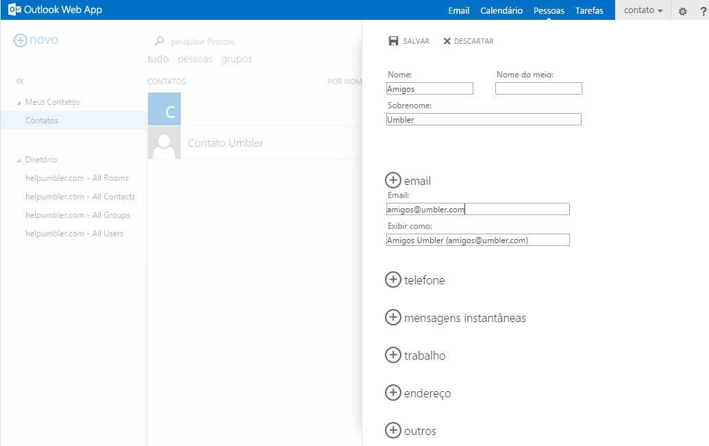 Adicionando contatos no seu E-mail Exchange