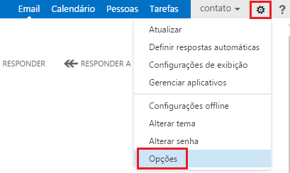 Adicionar contatos a seu grupo de e-mails é simples, acesse outlook.umbler.com e faça login com a conta definida como administrador do grupo, logo clique em Configurações e Opções.