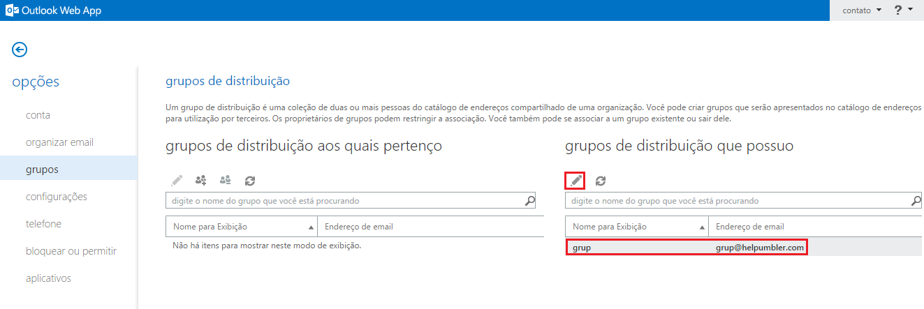 Em Grupos de distribuição que possuo clique em Editar.