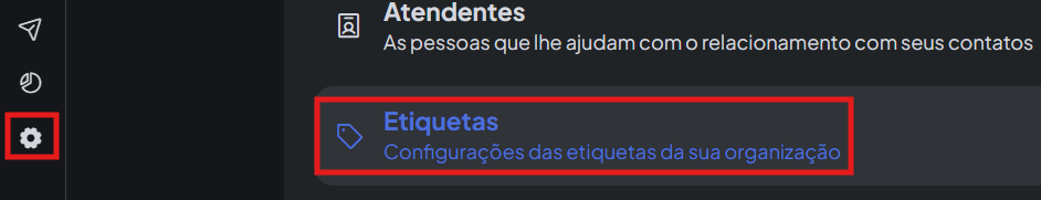 Clique na engrenagem de configuração no canto esquerdo do painel da sua conta e depois em Etiquetas: