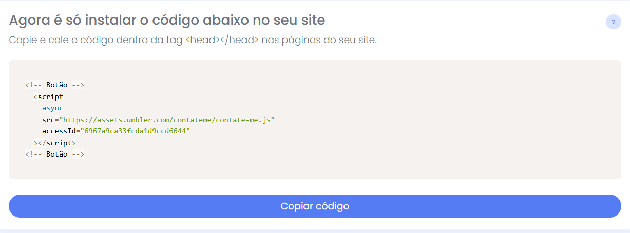 - A mensagem que será exibida como formato de pop-up em seu site para chamar atenção do usuário. Se desejar somente o botão, deixe este campo vazio.