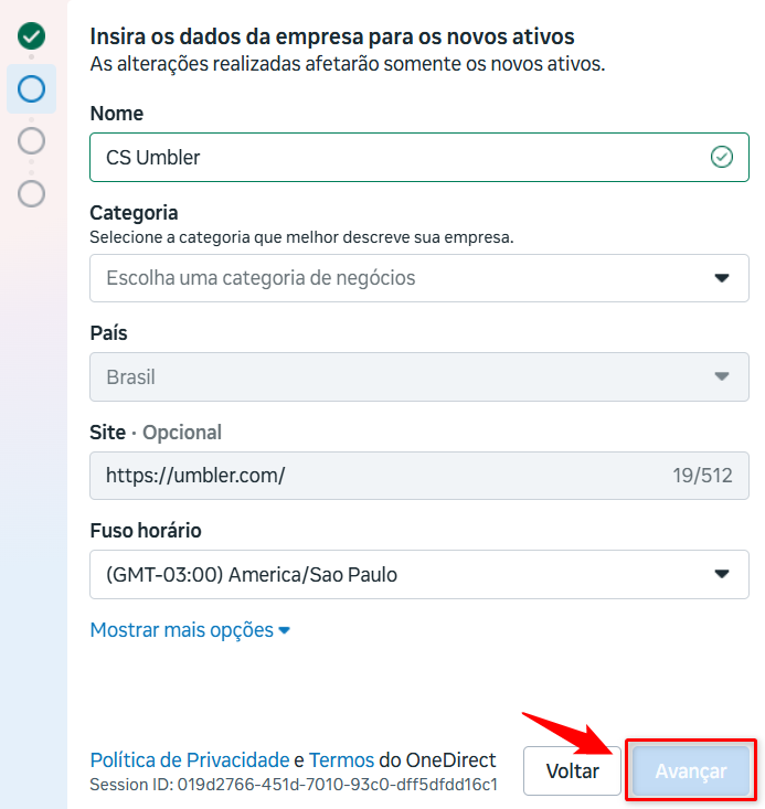 Preencha as informações obrigatórias da empresa e clique em Avançar.