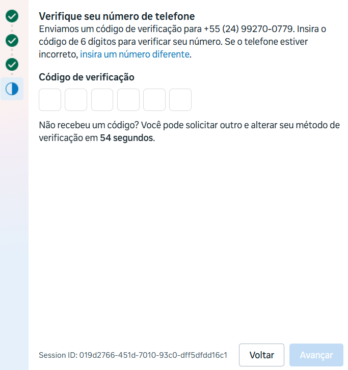 - Número Disponível para Receber SMS/Ligação: Certifique-se de possuir um número de telefone disponível e acessível para receber SMS ou chamadas, pois isso será necessário durante o processo de verificação.