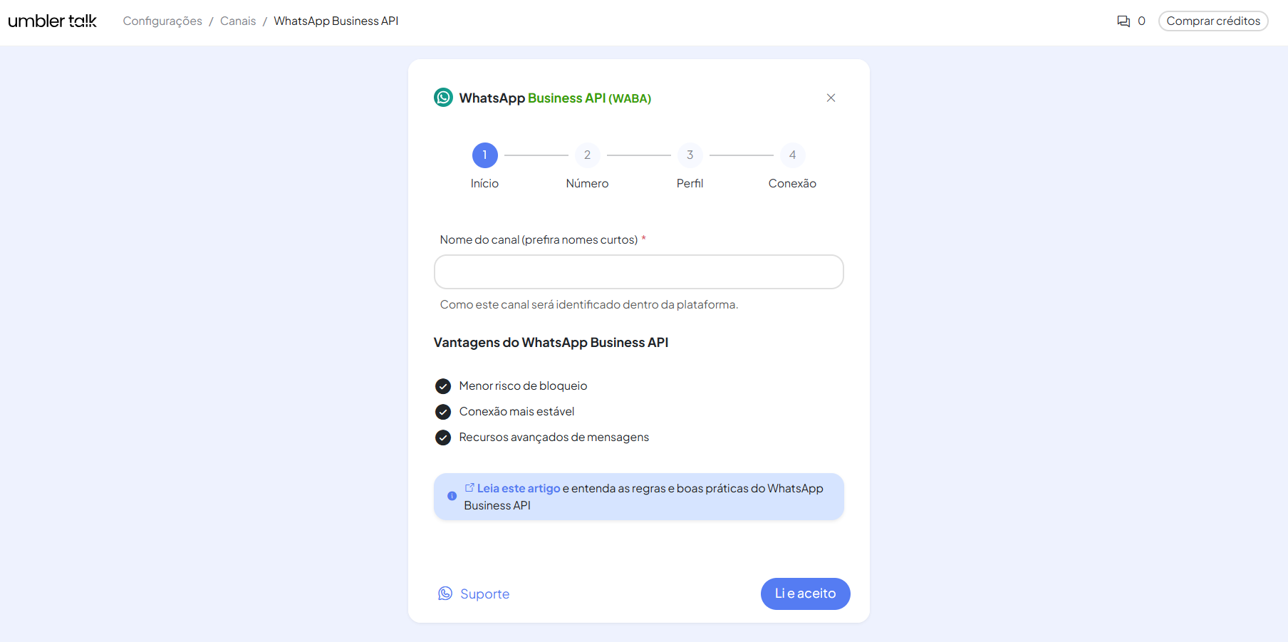 Criando um canal WhatsApp Business API