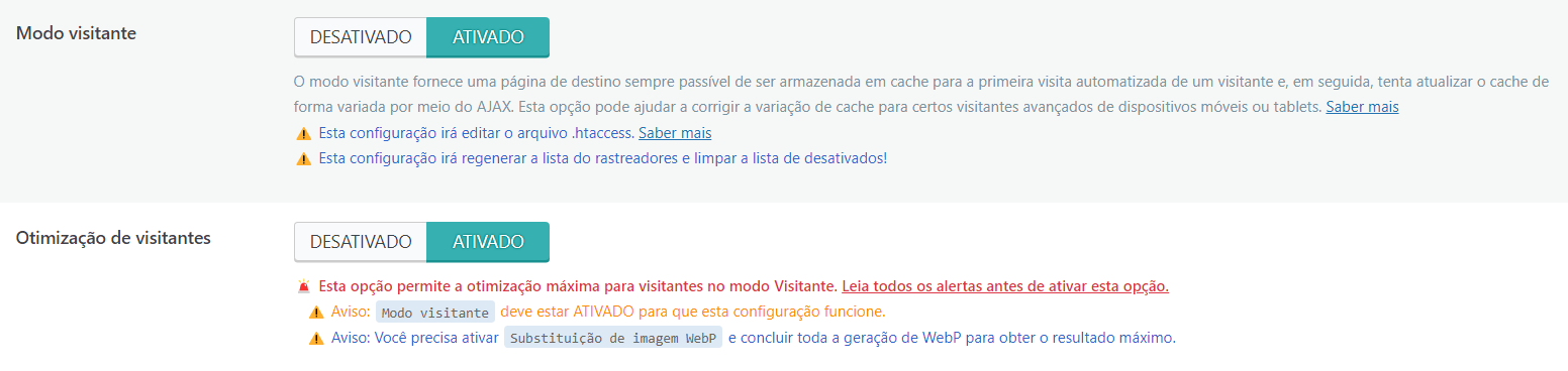 Ainda na mesma guia ative também o Modo visitante e a Otimização de visitantes: