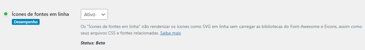 - Sim em Carregar suporte para o Font Awesome 4: