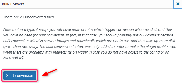 Em seguida cliquem em Bulk Convert e Start conversion: