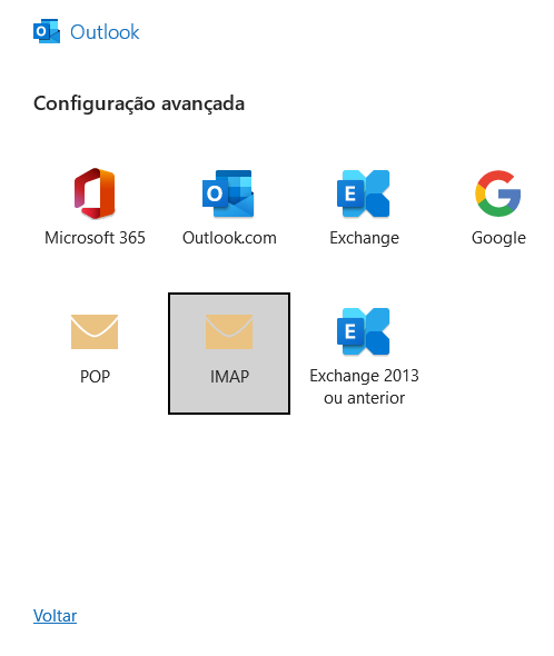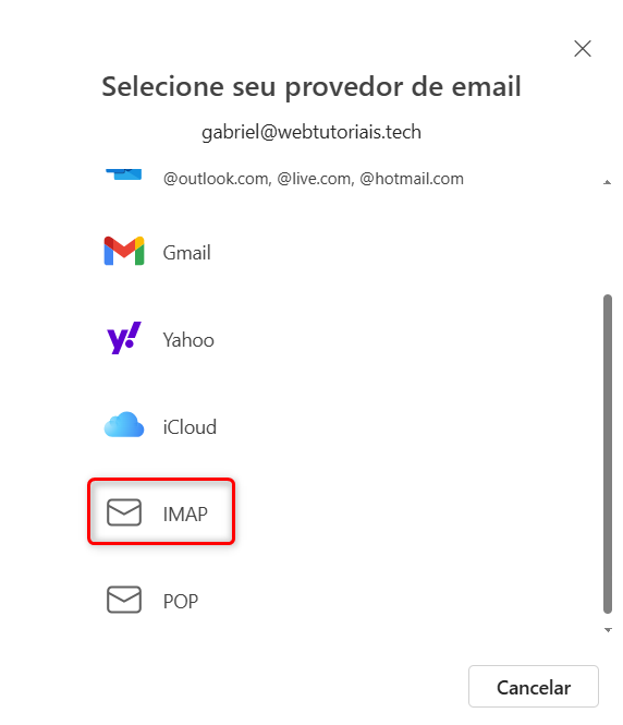 Selecione "IMAP":