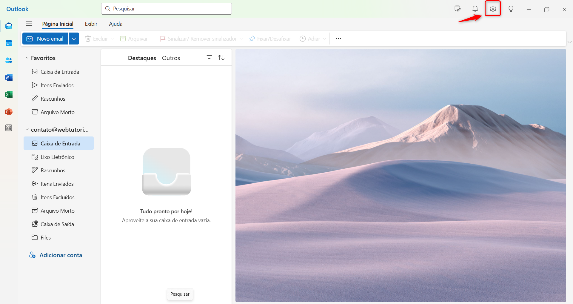 Abra o novo Outlook e clique no ícone de configurações no canto superior.