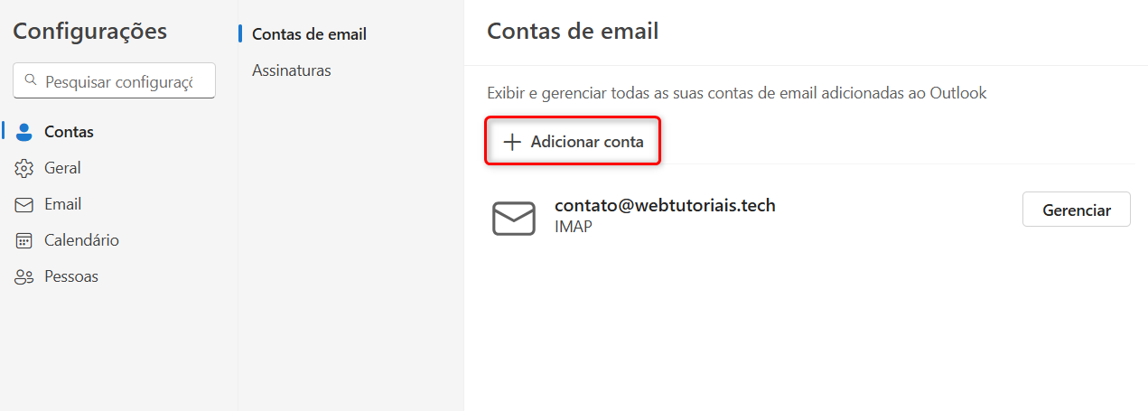 Clique em "Adicionar conta":