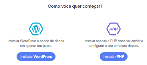 Ao confirmar a sua conta em seu e-mail, você será redirecionado para essa página, onde poderá selecionar para Hospedar site.