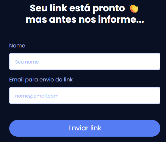 Você será redirecionado para uma nova página onde alguns dados são pedidos para conclusão do link:
