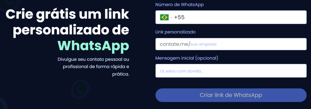 Se ele estiver disponível, clique em Criar link de Whatsapp