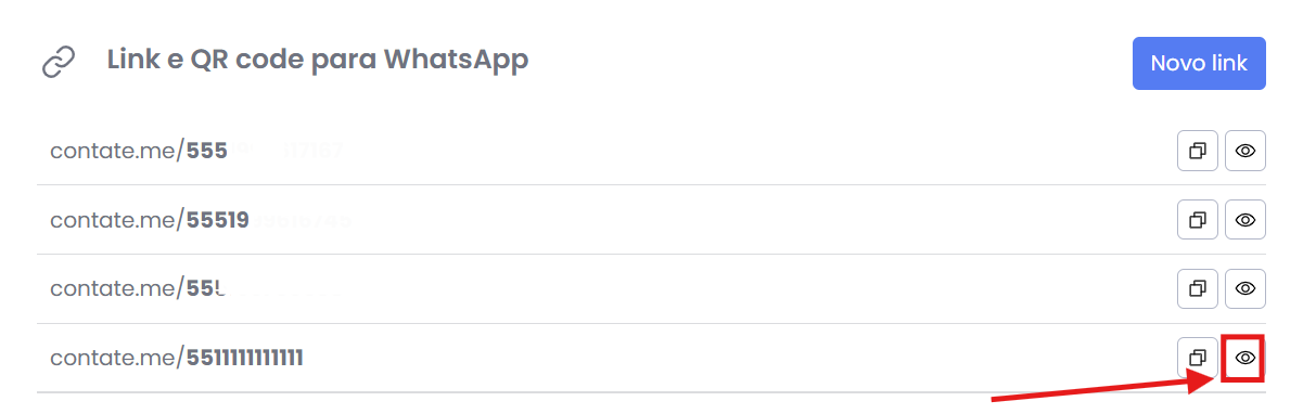 Na tela principal da sua conta no Contate.me, você poderá verificar os links criados em listagem: