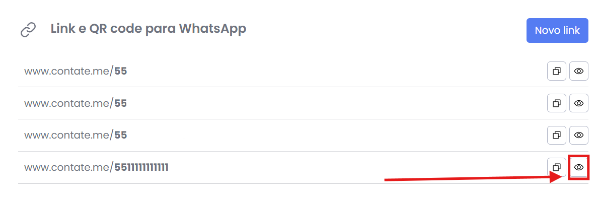 Na tela inicial, você irá verificar os seus links listados, basta clicar no ícone que exibe mais detalhes do mesmo: