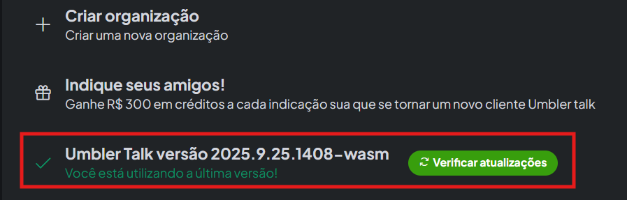 Caso você esteja na versão mais recente, a plataforma irá informar, sendo assim recarregue a sua página apertando a tecla F5 no seu teclado.