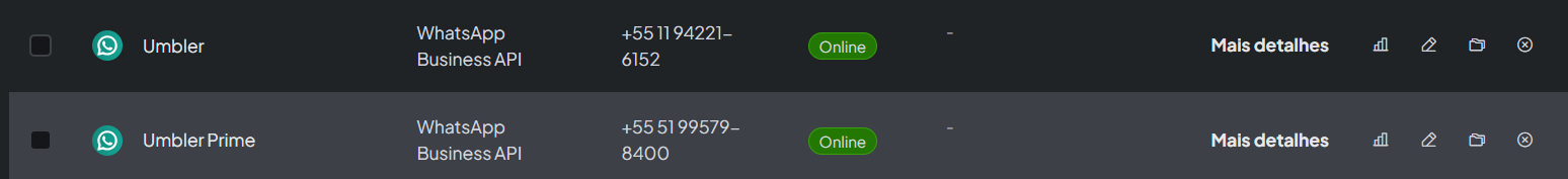 Em seguida, verifique se o seu canal de atendimento está "online". Caso ele esteja offline, as mensagens do período de desconexão não irão ser espelhadas na conversa.
